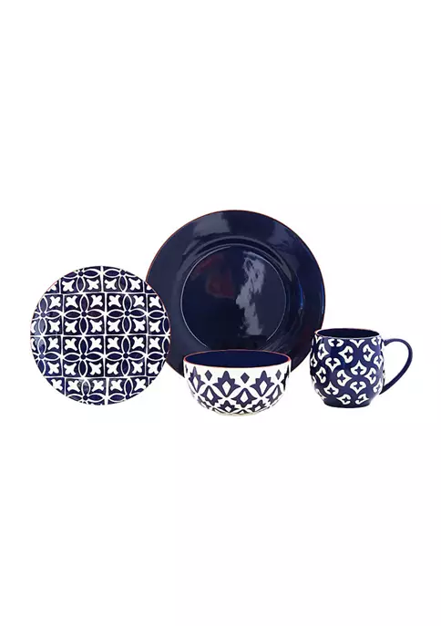 Amari features repeating contemporary shapes, reminiscent of beautifully intricate tilework. This dinnerware mixes three geometric patterns, grounded by a simplistically solid blue dinner plate. Crafted in beautiful stoneware, this 16 piece set dresses up any table with a modern flair.