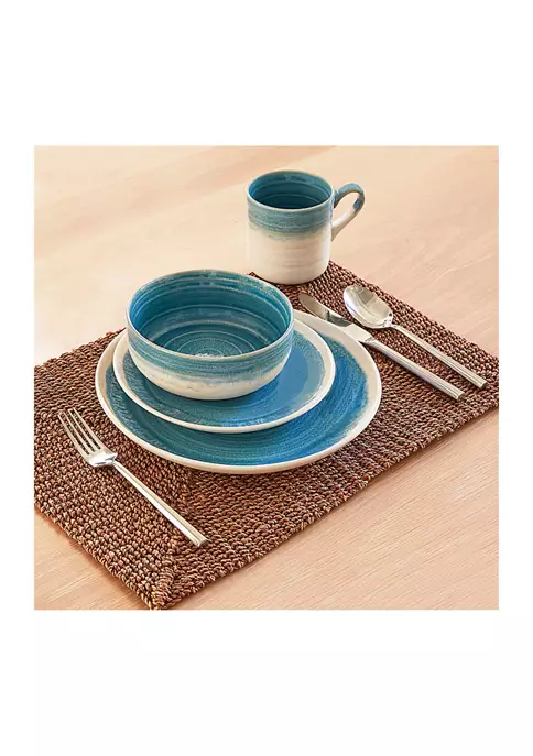 Our Hearth Aqua 16 piece dinnerware set has an earthy, organic feel. Ground your table with soothing aqua tones and radial texture that gives life and depth to every setting. Hearth’s speckled and hand-crafted look elevates a traditional “splatter” pattern. The added touch of a unique mug handle brings makes this a standout backdrop for all meals to come.