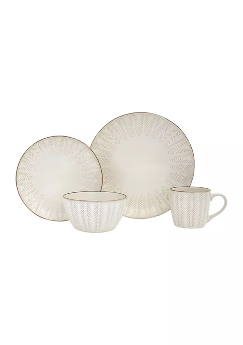 Welcome timeless accents to your dining room with the Plume dinnerware set. Crafted from durable stoneware, this 16 piece dinnerware combines a timeless ivory glaze with elegant textures to create sophisticated set perfect for any occasion.