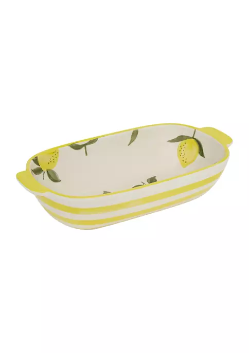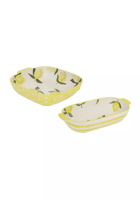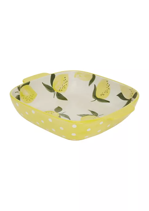 Entertain in style with this fabulous Oven-To-Table Baker Set. The lemon tango pattern will add some pizazz to your table. This set is microwave, oven, and dishwasher safe. It includes one square baking dish and 1 bake loaf.