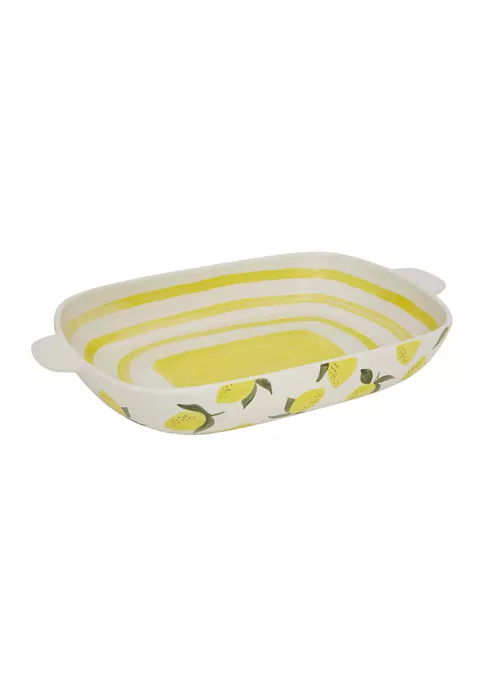 Entertain in style with this fabulous Oven-To-Table large baking dish. The lemon tango pattern will add some pizazz to your table. The dish is dishwasher, oven, and microwave safe.