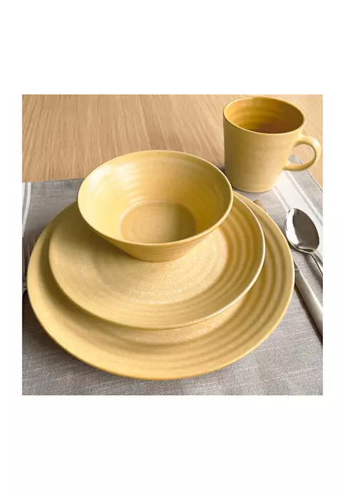 Effortlessly elevate your dining room with this gorgeous dinnerware set. Crafted from durable stoneware, this 16-piece dinnerware combines elegant textures and natural hues to create a timeless set perfect for any occasion. This set is dishwasher and microwave safe.