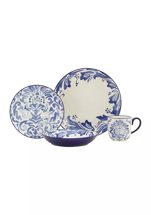 Reminiscent of beautifully intricate tilework, the blue and white pattern, crafted in beautiful stoneware, elevates any table to a new level of sophistication.