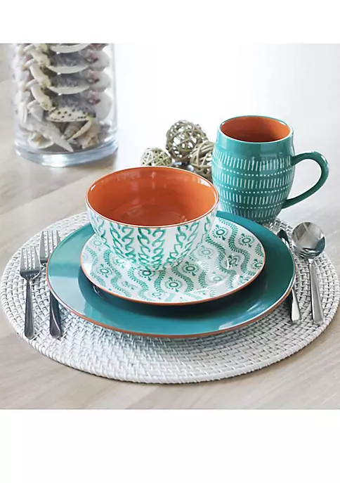 The Tangiers Turquoise 16-Piece Dinnerware Set includes: