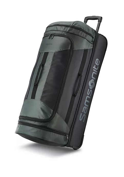 With a drop bottom construction that allows for separation of belongings, this 32-inch duffle bag by Samsonite® features end pockets for shoes and wet items, a large U-shaped main opening, and bumper runners the bottom, all designed to help you travel in comfort and style.