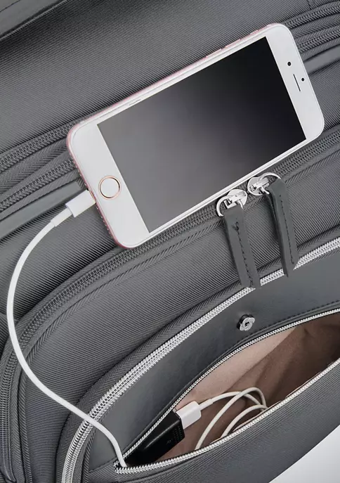 •Front zippered pocket: perfect for storing smaller items needing quick and easy access; includes an integrated USB Port that provides easy connection to USB accessories (battery/USB accessories not included)