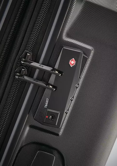 Exterior: Durable twill-textured polycarbonate shell, TSA- compliant lock