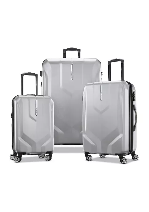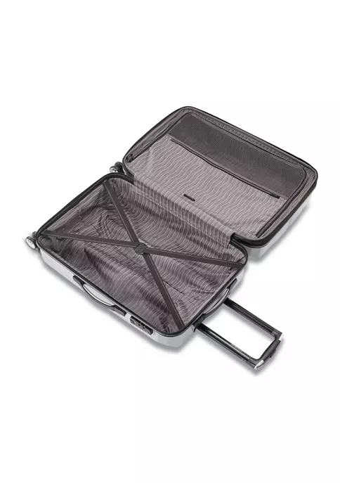 Carry-on spinner: 14 in L x 9.25 in W x 19.5 in H, 6.83 lb